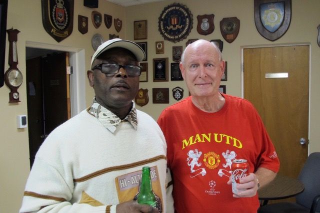 Iain Morrison and Ian Ganson - It sure is a small world when it comes to bumping into unexpected people! A prime example occurred last Wednesday when our good friend, Iain Morrison, was walking through a B & Q store in Edinburgh, Scotland, wuth his wife and bumped into someone from the distant past. As Iain described it, “As we walked in, I saw a guy coming towards us who looked very familiar. We crossed and looked at each other without saying anything. I immediately thought it looked like Ian Ganson, ex-Bda Police officer who was my uniform sergeant for a while in St. George's around 1976/77 era.