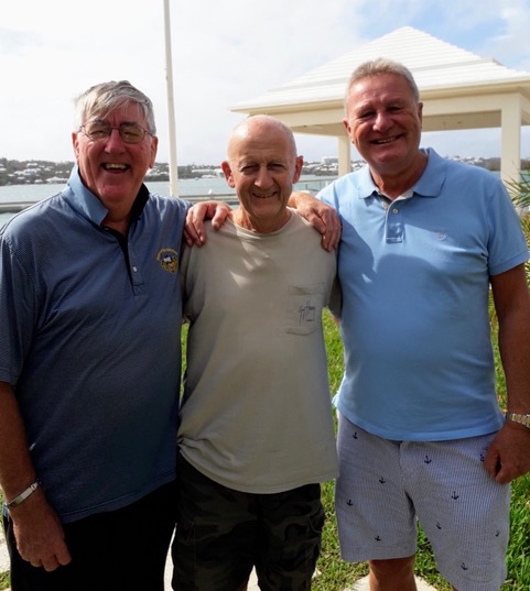 I am not sure if Dave Cook forwarded this picture to you which was so unbelievable with me and Dave having a chat and catch up over a coffee at The Fairmont Hamilton on October 1st 2019, where I was staying, when I was over there to celebrate my BIG birthday at the end of September/early October with my Bermuda kids, when all of a sudden, and unbelievably, who walks across the patio in front of us but Bob & Helen Kinnon who were in Bermuda staying with David Smith and had just arrived the evening before and were having a wander around The City.