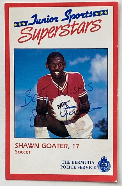 Of all the athletes selected to be superstars I must mention one in particular and that is young Sean Goater who was then playing football for North Village. Immediately after we launched the Junior Superstar cards, Sean came up to Police Headquarters to thank us personally for selecting him, and when he was later invited to Manchester United for trials he asked me if I happened to have any extra cards for him to take to England. I was able to let him have several dozen cards, and the next time he came home he told me they had been a great success.