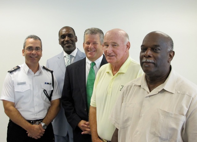 On a happy occasion. George was one of four retired Commissioners invited in July 2011 to attend the newly opened Hamilton Police Station at the corner of Court Street and Victoria Street, by then Commissioner Michael DeSilva, wh gave them a conducted tour of the new Police Station. The four retired Commissioners had over 120 years experience in the Bermuda Police DService between them.