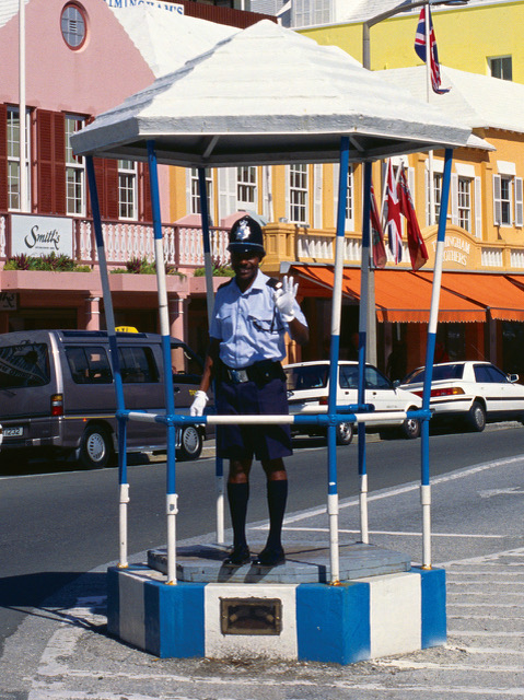 Just to put Miguel’s mind at rest, David was an avid photographer who worked here in advertising and design, and he took a photograph of a Front Street scene with Miguel on duty in uniform in the birdcage. He asked at the time if Miguel would agree to him using the image commercially and Miguel said he was happy for him to do so, and gave his name and badge number to David.