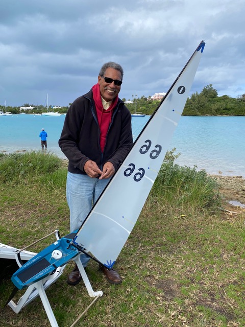Carlton is a member of the Bermuda Remote Control Sailboat Club and can often be seen sailing his beautiful remote-controlled model sailboat in the shallow waters of Stocks Harbour Bay along with other members of the BRCSC, especially on weekends. The group are mainly older guys who clearly enjoy their hobby and often hold competitions and sailing regattas in the bay.