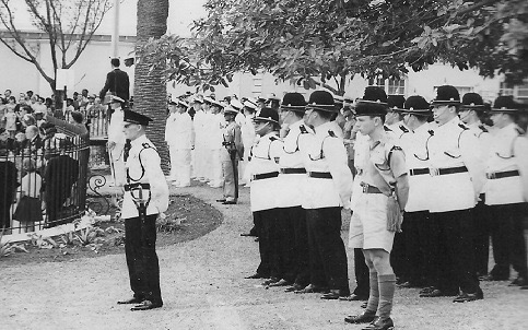Early on I did extra duties (paid) such as parking etc. at weddings guarding the silver and at the RBYC (not during the Newport-Bermuda Yacht Race), but most importantly at the Bermuda Tennis Stadium guarding Cassius Clay (who was about to change his name to Mohammad Ali) because of his adoring female fans, constant banter, and air cooling by the speed of his sparring punches. I also did motor cycle escort for Hailie Selassie and the Pope.