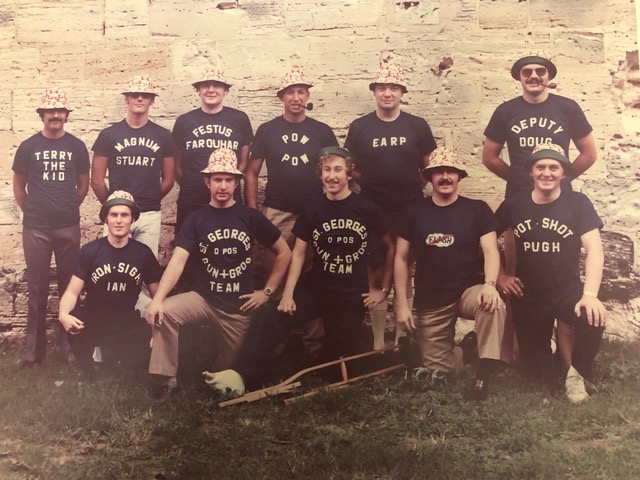 What a motley crew! It shouldn't be too difficult to identify most of these gentlemen with the aid of their "T" shirts, or to figure out what was their purpose and which Division they represented, but we need to confirm all of their names, what exactly they were participating in, how did they make out, and where and when the photo was taken. Could someone also please explain the circumstances behind one of the team members needing a crutch?!