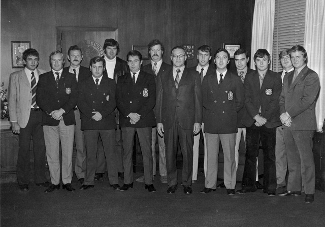 We asked if you could remember the days when we actually used to wear blazers, shirts with collars, and ties, on special occasions. This was clearly a special occasion and we wanted to know who they are, what is the occasion, and where and when was it? The answers are contained in the caption below. Our thanks to Wayne Robinson in particular for being right on the money. The photographer apparently forgot to ask them to smile!